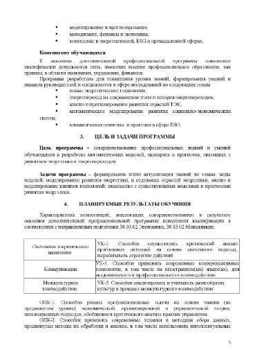 Цель программы – совершенствование профессиональных знаний и умений обучающихся в разработке математических моделей, сценариев и прогнозов, связанных с развитием энергетики и энергопереходом.